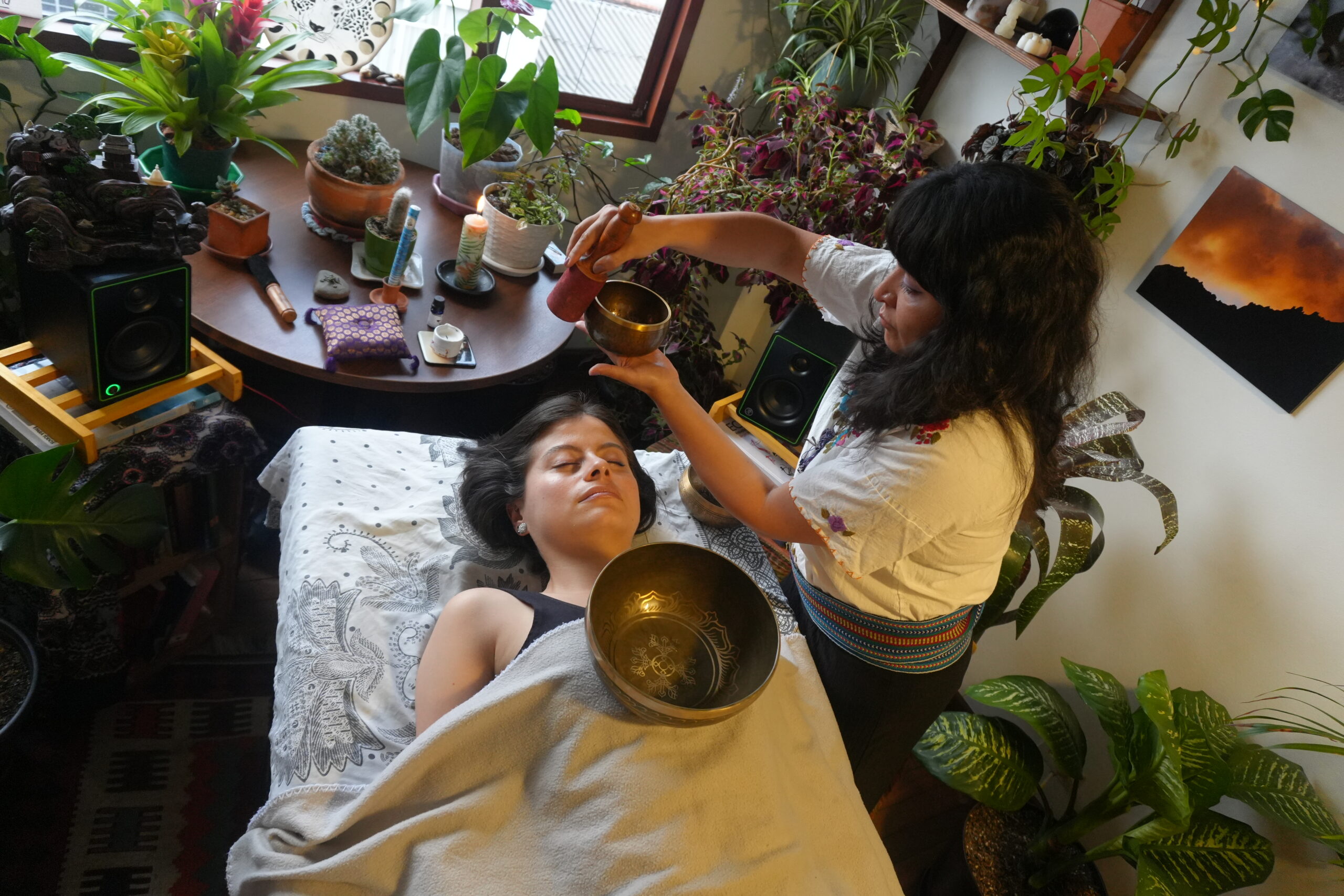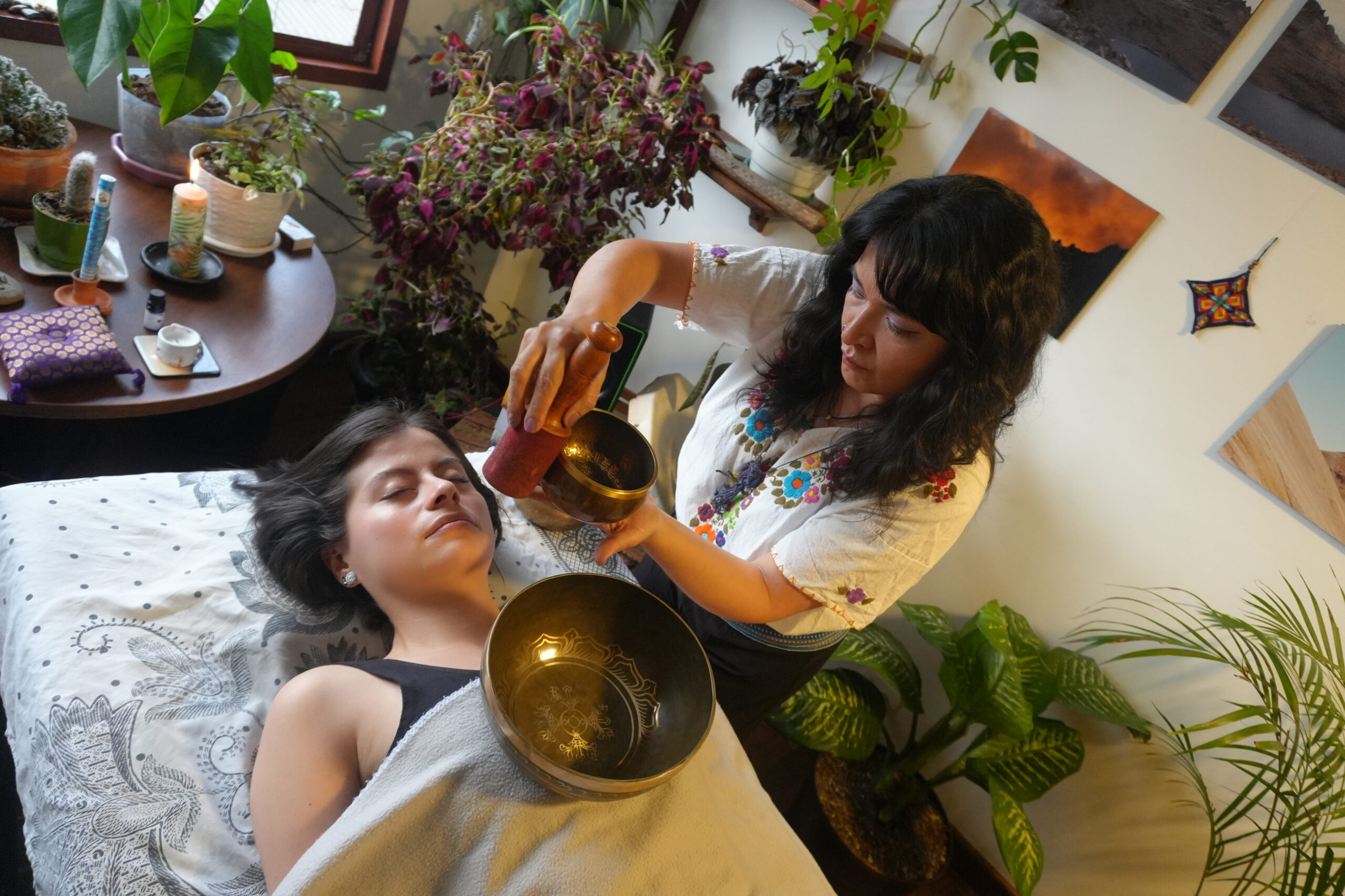 Cuencos, tambor, canto y voz como campo seguro para reorganizarte por dentro.